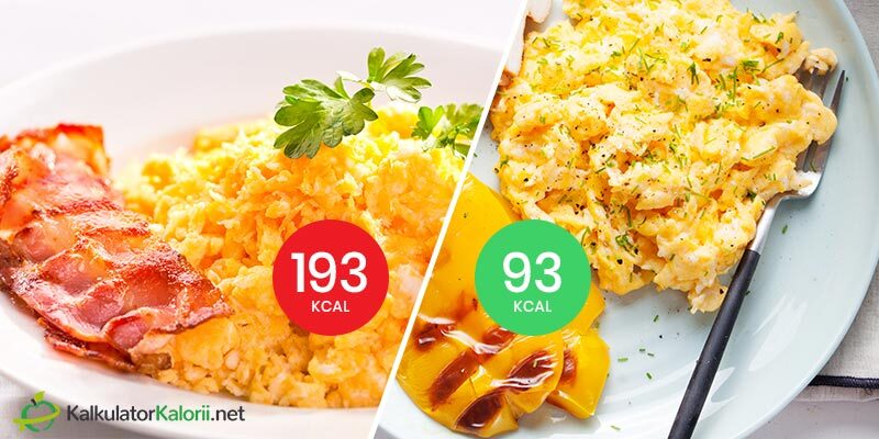 Dla przykładu, boczek zwiększa kaloryczność jajecznicy nawet o 100 kalorii na 100 gram. Jedząc taką jajecznicę, o łącznej gramaturze 300g, spozywasz dodatkowo około 300kcal. Co więcej, są to kalorie pochodzące głównie z wyjątkowo niekorzystnych nasyconych kwasów tłuszczowych.