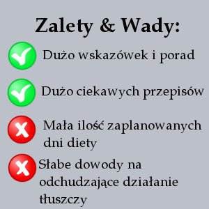 Smak: Posiłki są różnorodne i bardzo pomysłowe. Znajdziesz przepisy na pełnoziarnistą pizzę, klopsiki z orzeszków piniowych, jogurtowy koktajl i wiele innych.