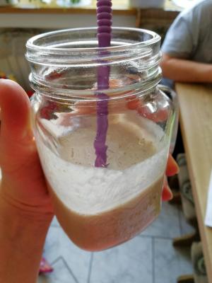 Najlepszym urządzeniem do zmieszania jest mój ulubiony termomix, ale jezeli ktoś nie ma to może być blender. Najpierw wrzucamy twarde produkty a z greipfruta wyciskamy sok, bo zblendowaniu dolewamy go do masy i powstaje koktail.